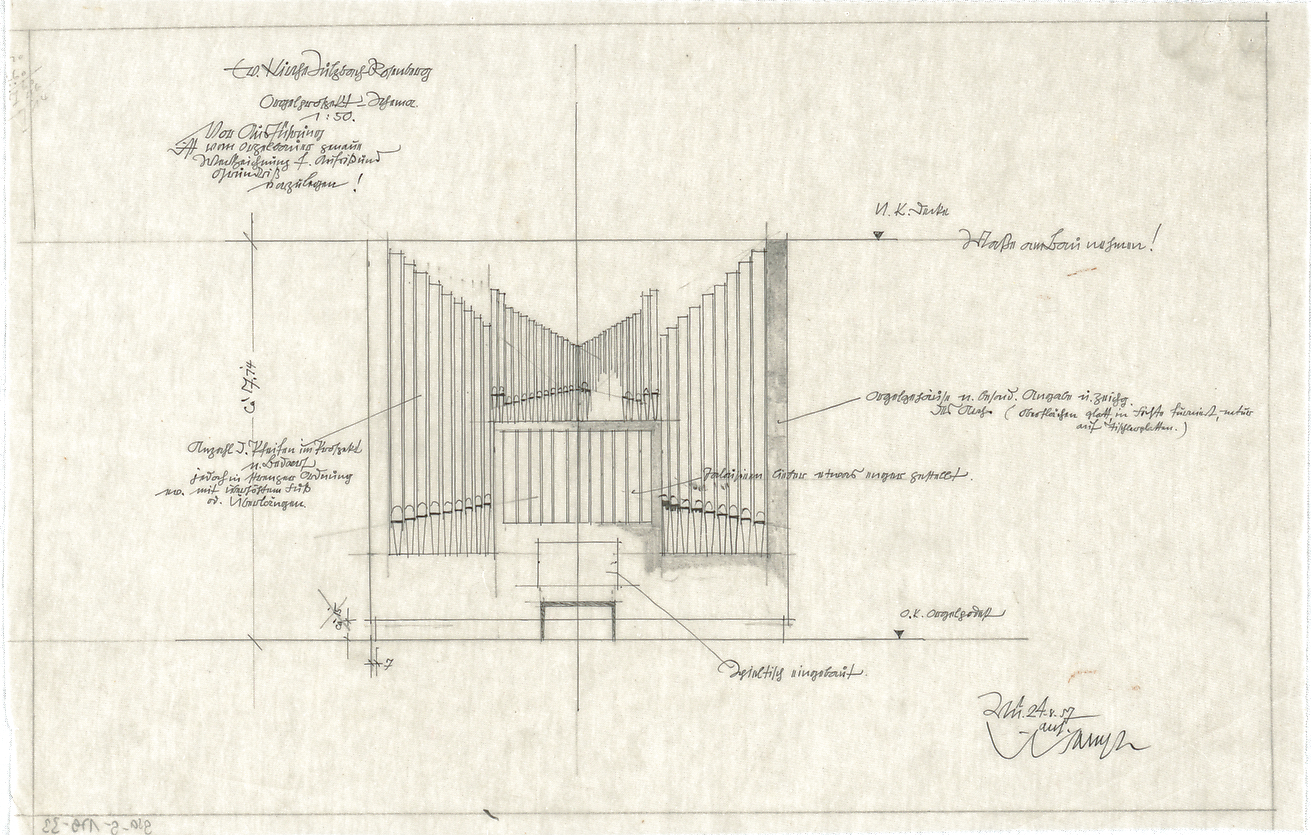 - Ausführungsplan, Orgelprospekt (Ansicht)