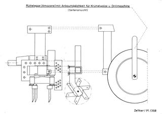 Rüttelegge (Amazone) mit Anbaumöglichkeit für Krümelwalze u. Drillmaschine (Seitenansicht)