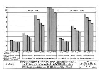 Bergeleistung (t/h) bei verschiedenen Ladewagenverfahren zur Einlagerung von Anwelkgut (40 % TM) in Hochsilos