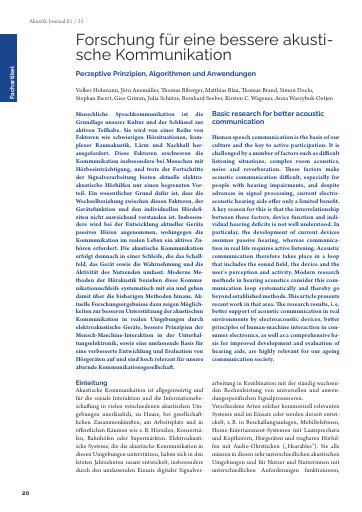 Forschung für eine bessere akustische Kommunikation: Perzeptive Prinzipien, Algorithmen und Anwendungen