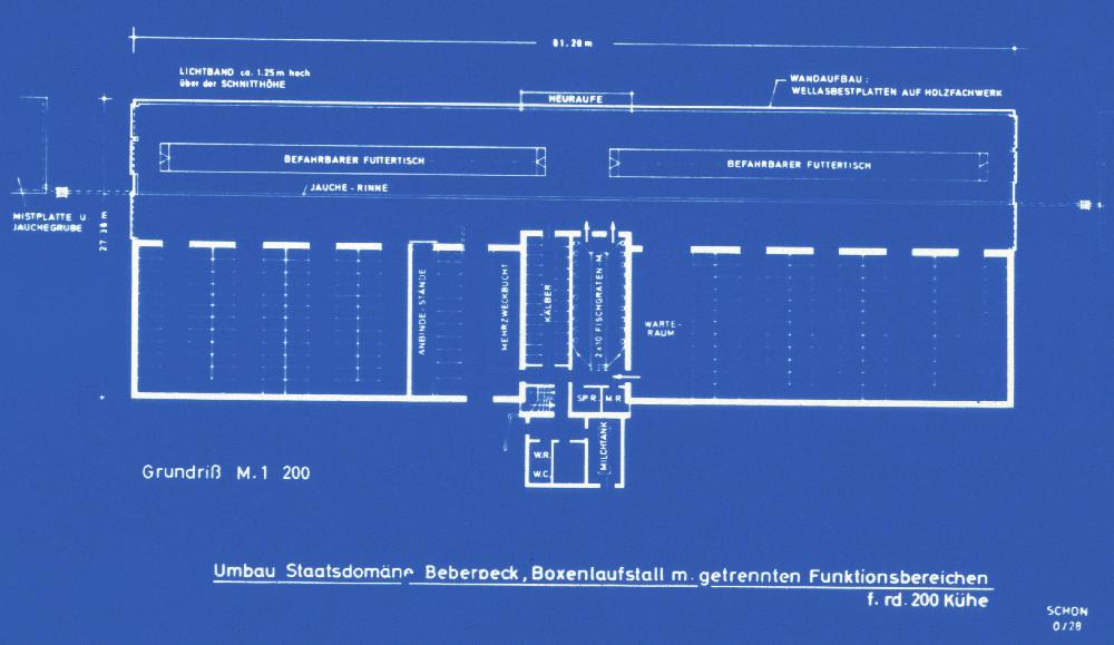 Umbau Staatsdomäne Beberoeck, Boxenlaufstall mit getrennten Funktionsbereichen für rd 200 Kühe