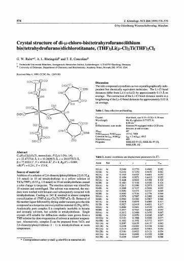 Zeitschrift für Kristallographie - New Crystal Structures
