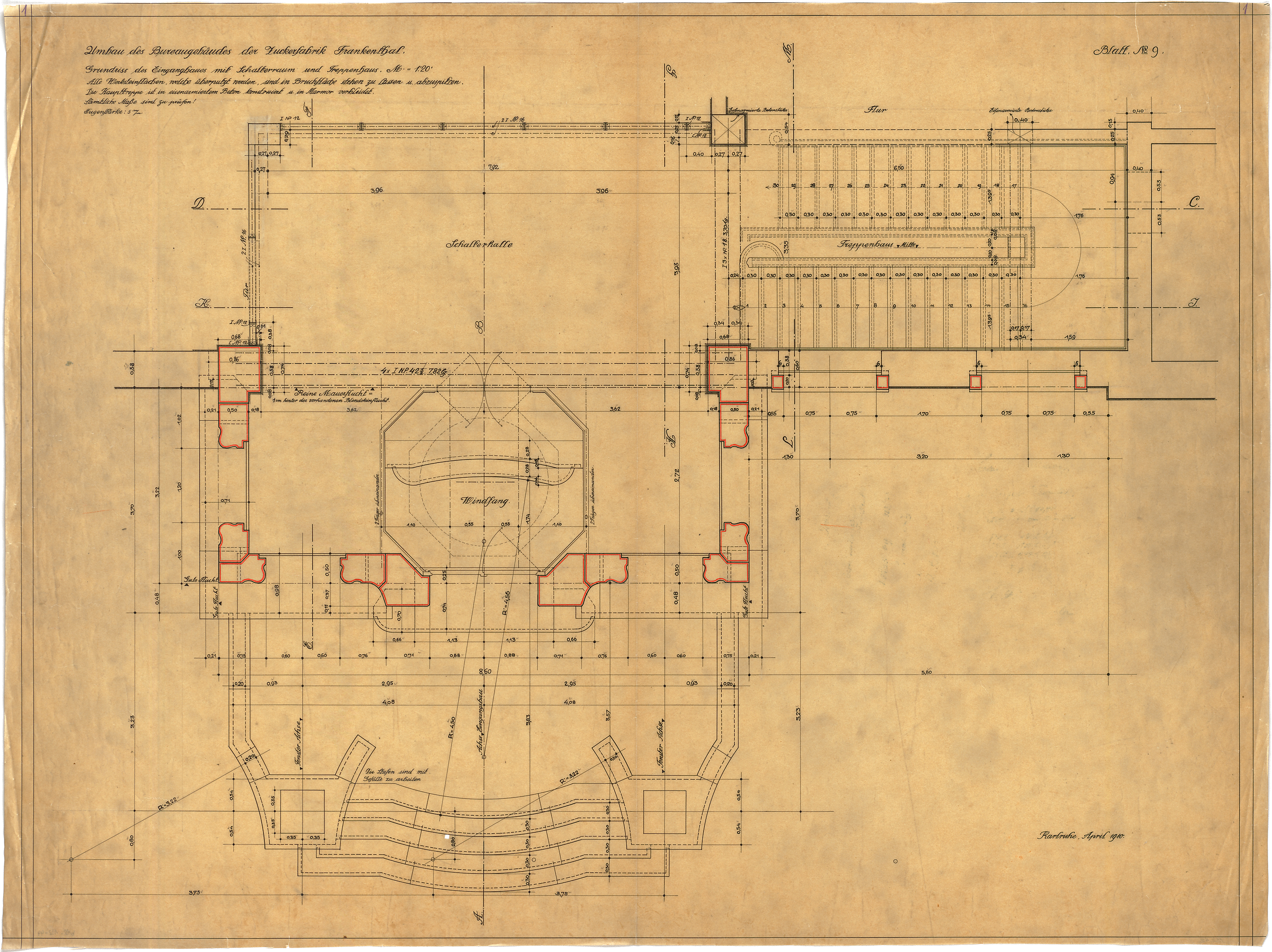- Eingangsbau mit Schalterraum und Treppenhaus (Grundriss)