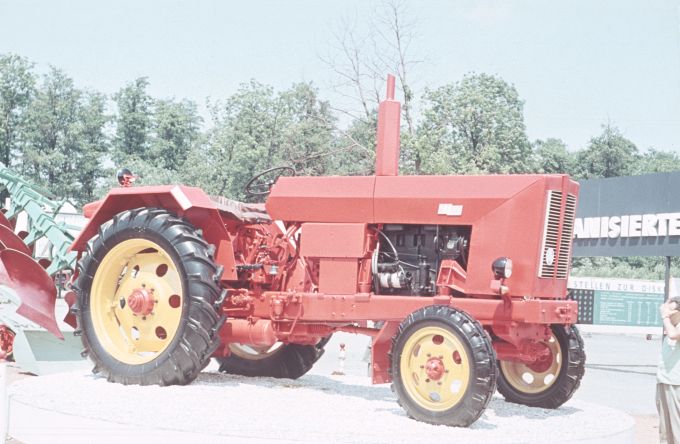 Traktor mit Anbau-Beetpflug auf Ausstellung