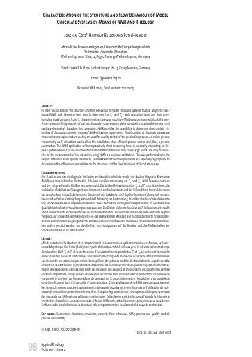 Characterisation of the Structure and Flow Behaviour of Model Chocolate Systems by Means of NMR and Rheology