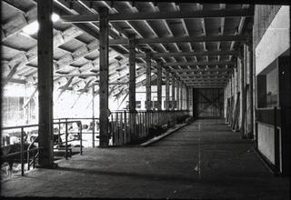 - Rinderoffenstall; ; Versuchsgut der Farbenfabriken Bayer A.G. Leverkusen, Rudlos bei Lauterbach/Hessen