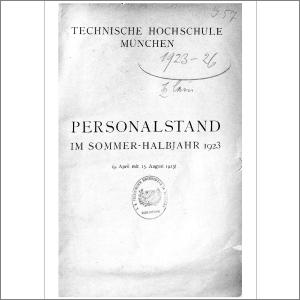 Technische Hochschule in MünchenPersonalstand im Sommer-Halbjahr 1923 1923