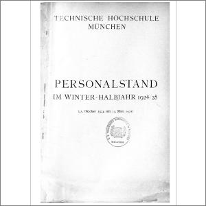 Technische Hochschule in MünchenPersonalstand im Winter-Halbjahr 1924/25 1924