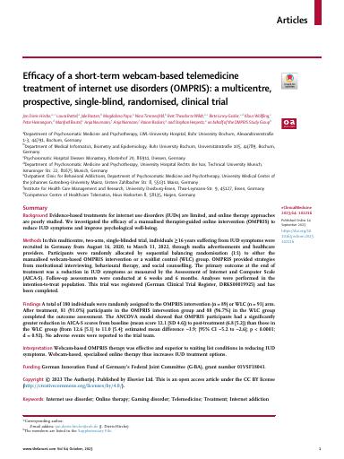 Efficacy of a short-term webcam-based telemedicine treatment of internet use disorders (OMPRIS): a multicentre, prospective, single-blind, randomised, clinical trial