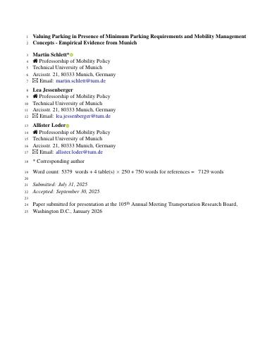 Valuing Parking in Presence of Minimum Parking Requirements and Mobility Management Concepts - Empirical Evidence from Munich