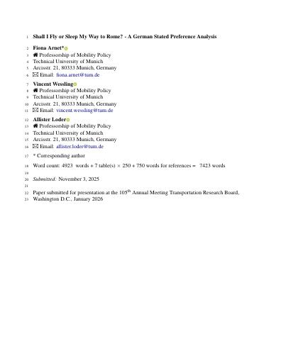 Shall I Fly or Sleep My Way to Rome? - A German Stated Preference Analysis