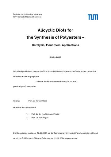 Alicyclic Diols for the Synthesis of Polyesters - Catalysis, Monomers, Applications