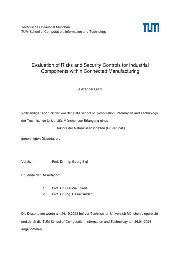 Giehl, AlexanderEvaluation of Risks and Security Controls for Industrial Components within Connected Manufacturing2024Dissertation374 Seiten