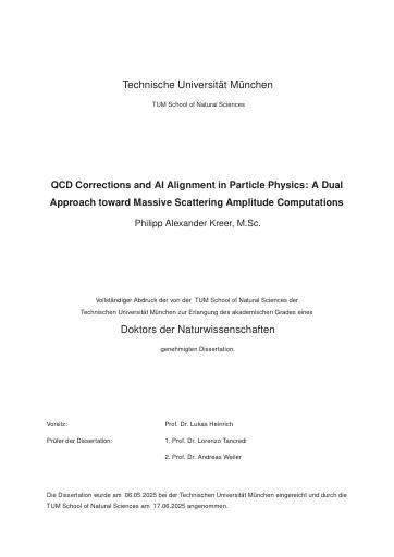 Kreer, Philipp AlexanderQCD Corrections and AI Alignment in Particle Physics: A Dual Approach toward Massive Scattering Amplitude Computations2025Dissertation182 Seiten