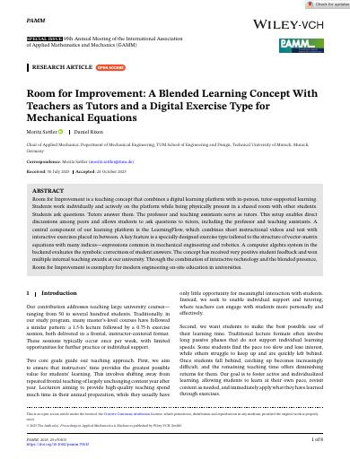 Room for Improvement: A Blended Learning Concept With Teachers as Tutors and a Digital Exercise Type for Mechanical Equations