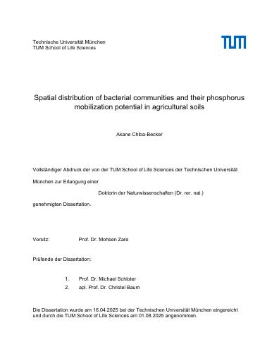 Chiba-Becker, AkaneSpatial distribution of bacterial communities and their phosphorus mobilization potential in agricultural soils2025Dissertation133 Seiten