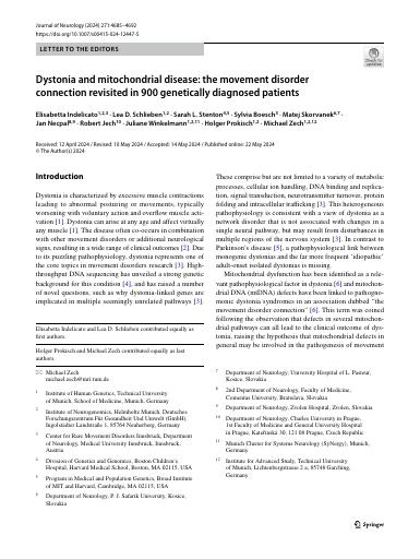 Dystonia and mitochondrial disease: the movement disorder connection revisited in 900 genetically diagnosed patients