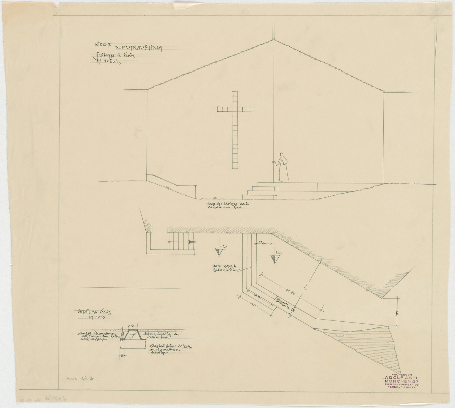 - Freitreppe (Grundriss; Ansicht); Kreuz (Ansicht; Detail)