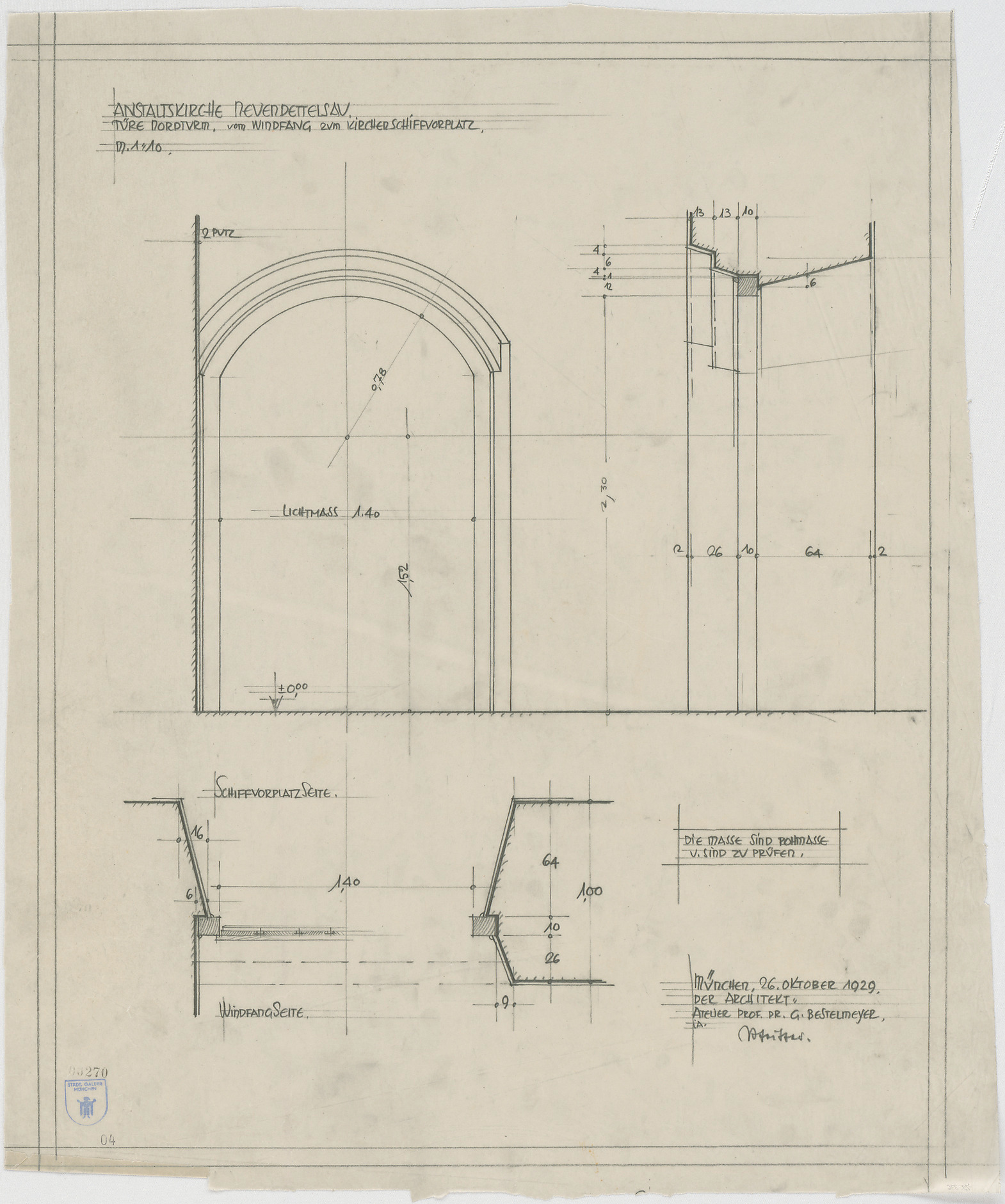 - Tür Nordturm, vom Windfang zum Kirchenschiffvorplatz (Grundriss; Ansicht; Schnitt)