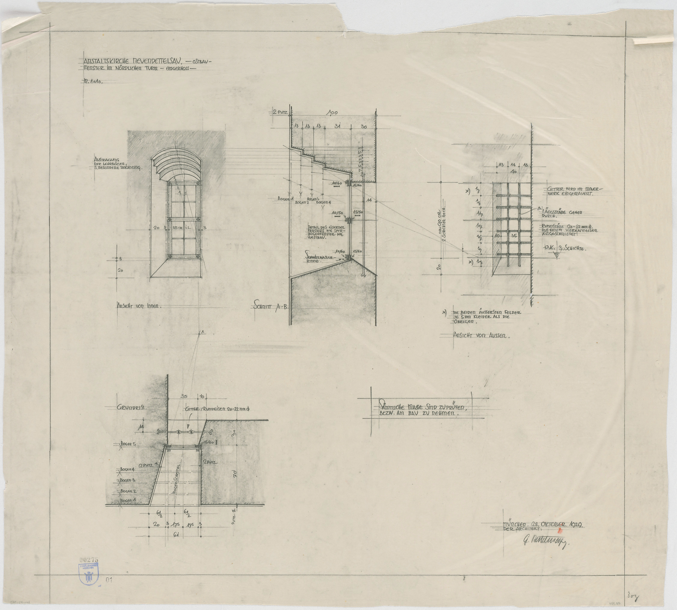- Fenster im nördlichen Turm Erdgeschoss (Grundriss; Ansichten; Schnitt)