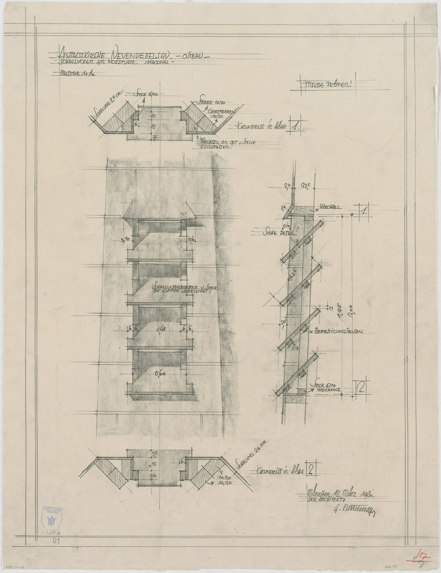 - Schallluken im Nordturm (Grundriss; Ansicht; Schnitt)
