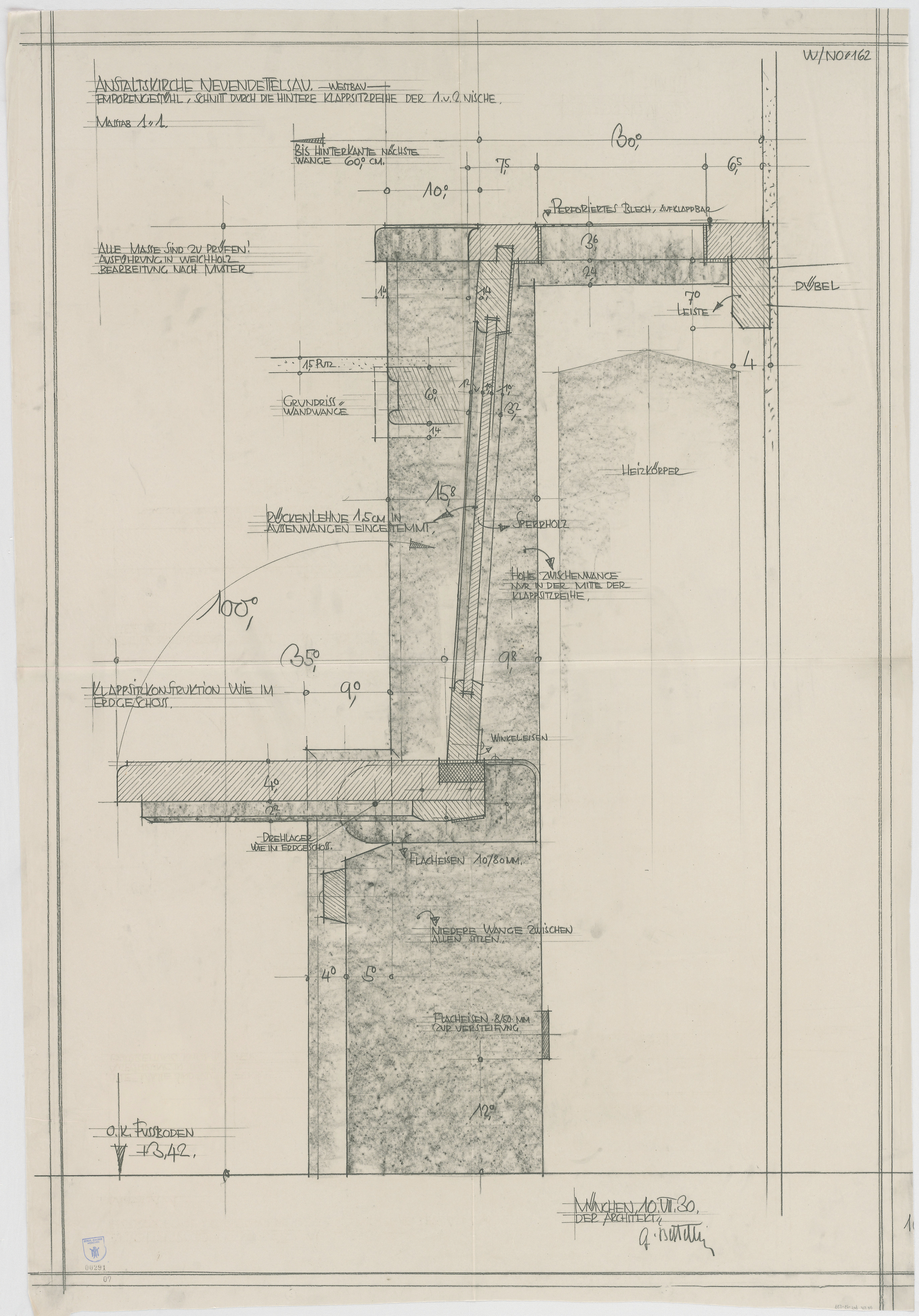 - Westbau, Emporengestühl (Schnitt durch die hintere Klappsitzreihe 1. u. 2. Nische)