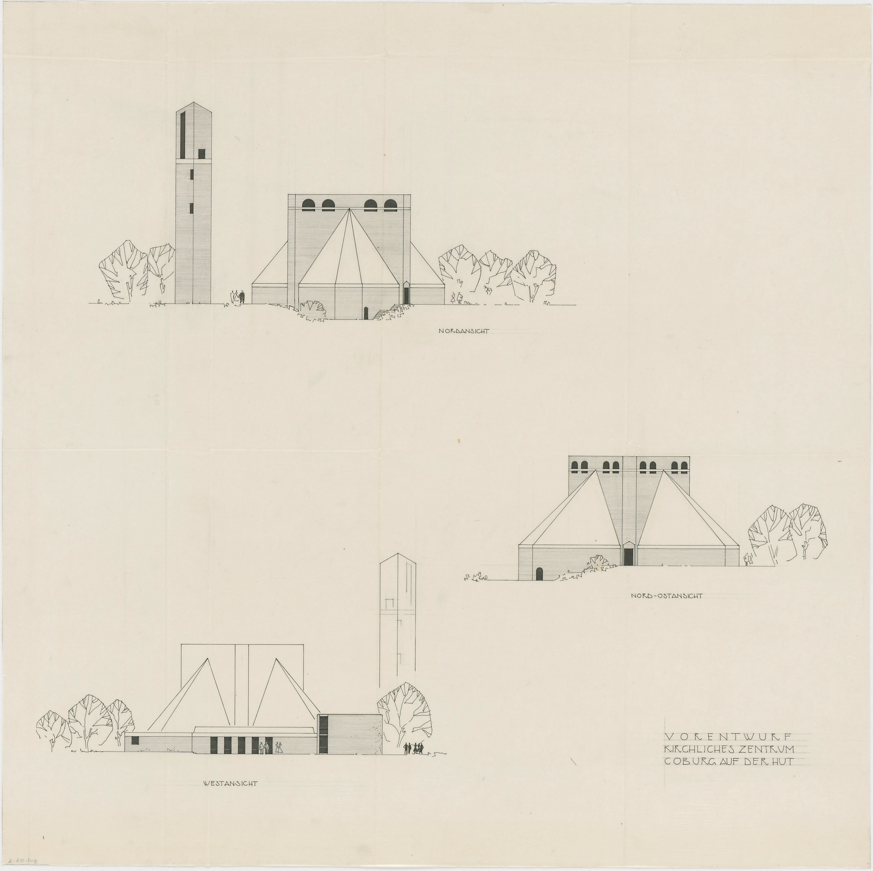 - Vorentwurf (Westansicht; Nordansicht; Nordostansicht)