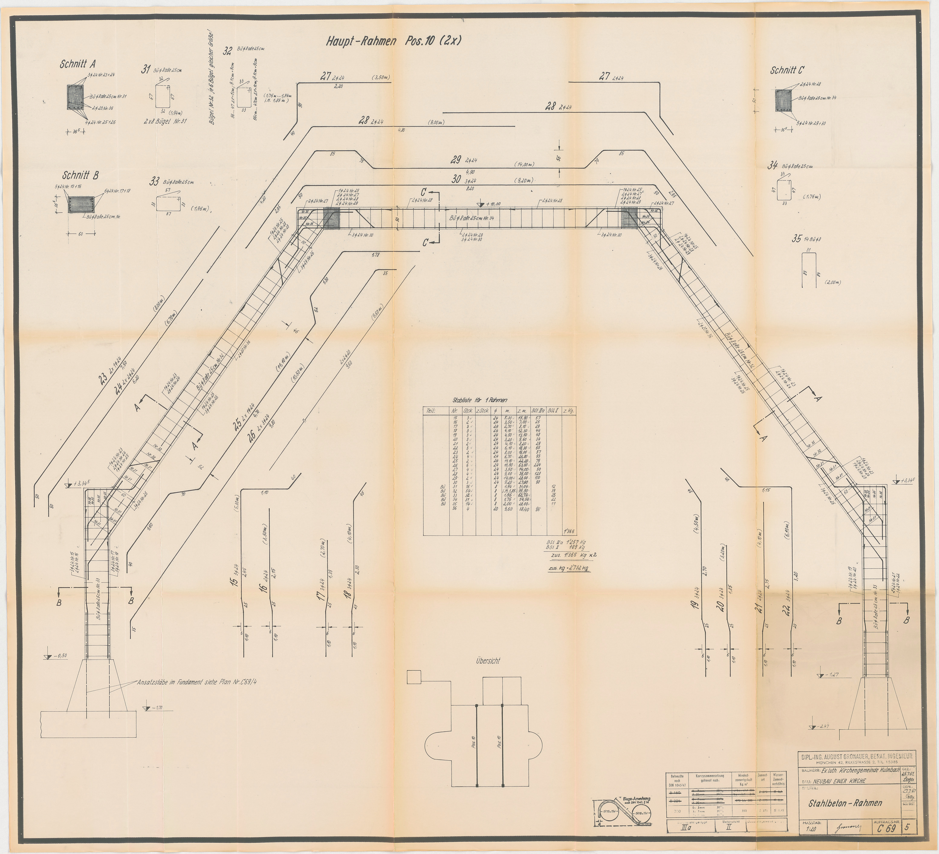 - Stahlbetonrahmen (Übersicht; Schnitt; Detailschnitte)