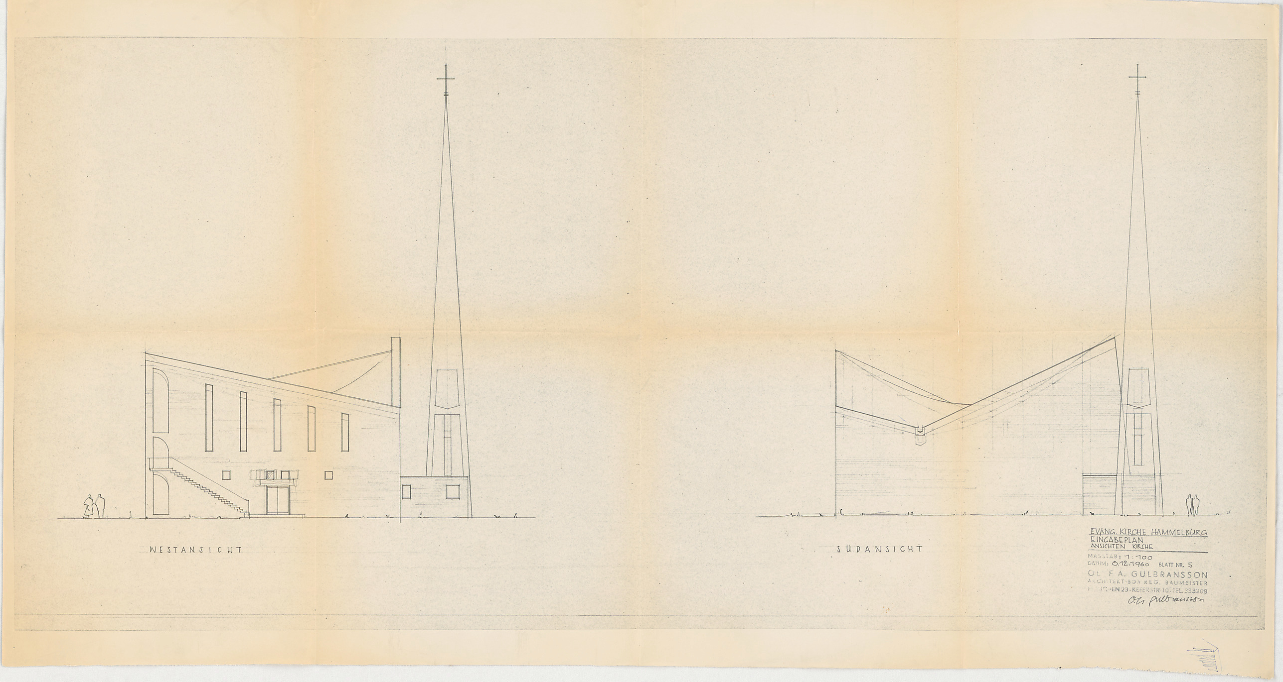 - Eingabeplan, Kirche (Westansicht; Südansicht)