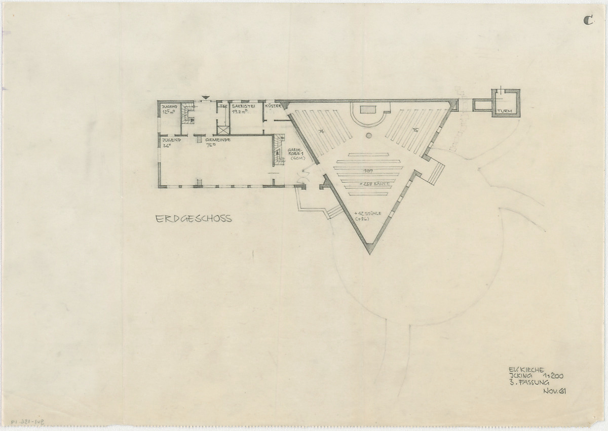 - Kirchengeschoss, 3. Fassung (Grundriss EG)