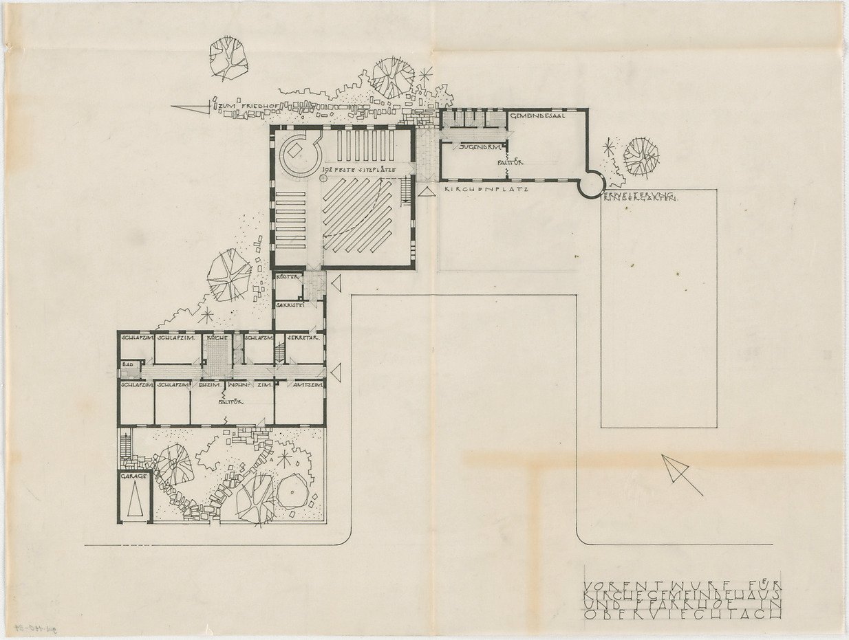 - Vorentwurf für Kirchengemeindehaus und Pfarrhof (Grundriss)