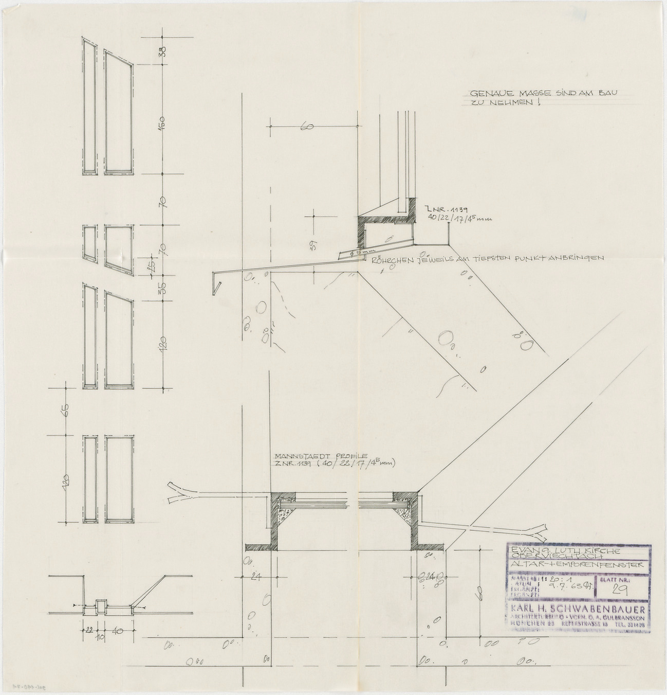 - Altar und Emporenfenster (Ansicht; Detailschnitte)
