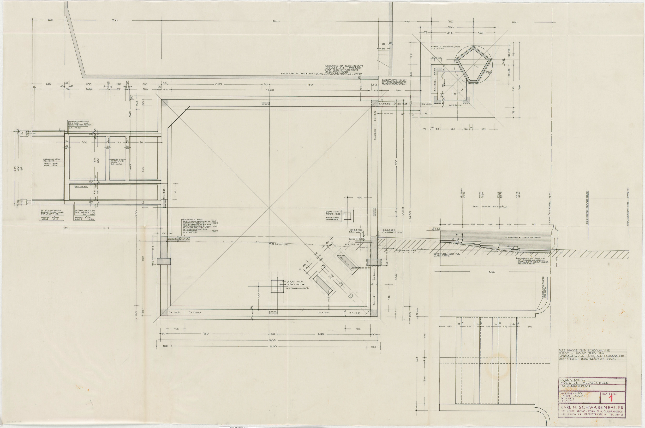 - Fundamentplan (Grundriss; Schnitte); Außentreppe (Schnitt)
