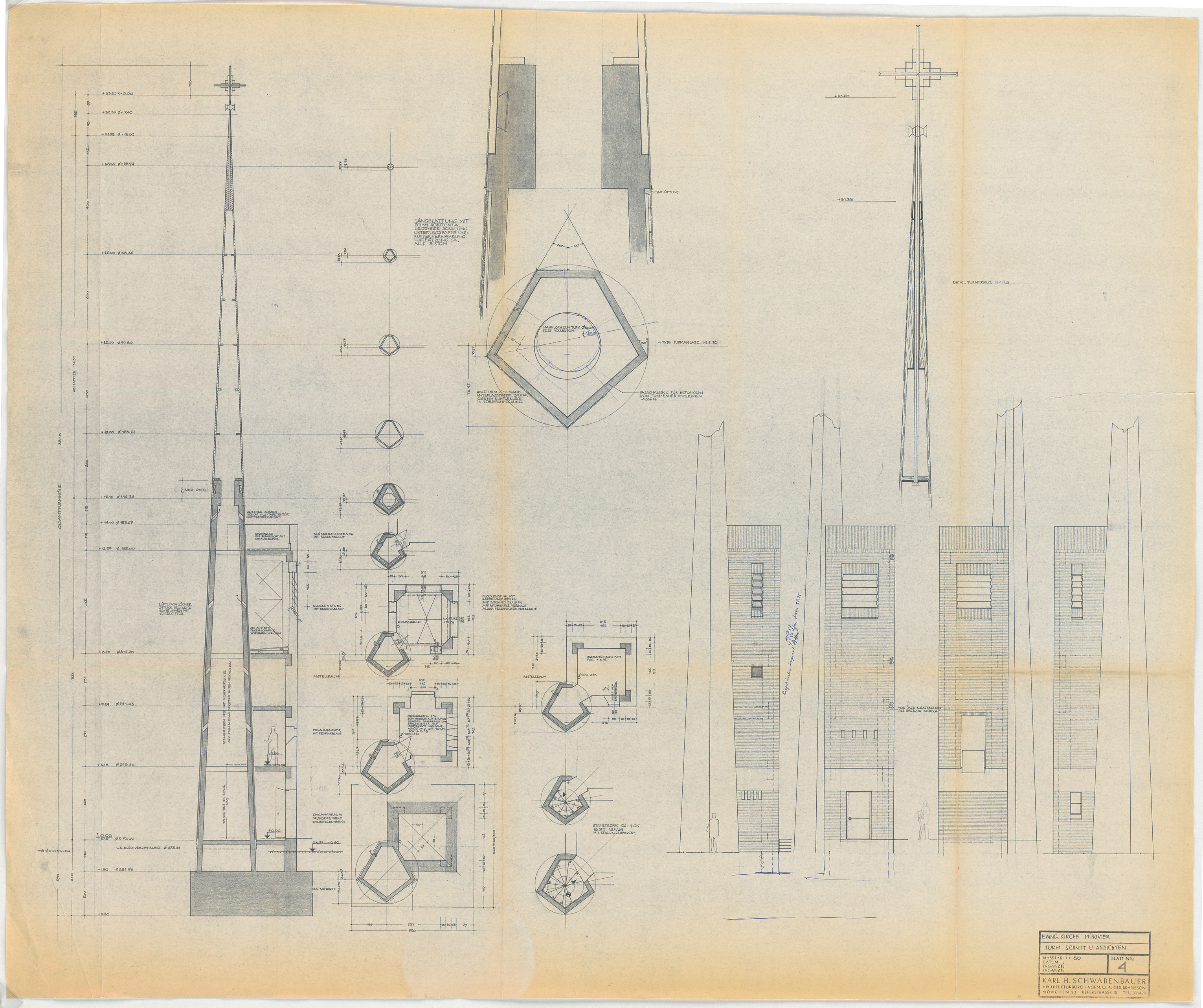 - Turm (Grundriss; Ansichten; Schnitte)