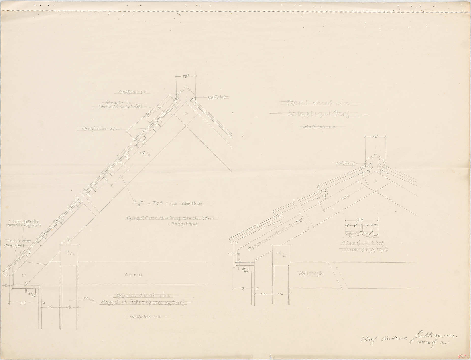 - Doppeltes Biberschwanzdach (Schnitt); Falzziegeldach (Schnitt); Falzziegel (Querschnitt)