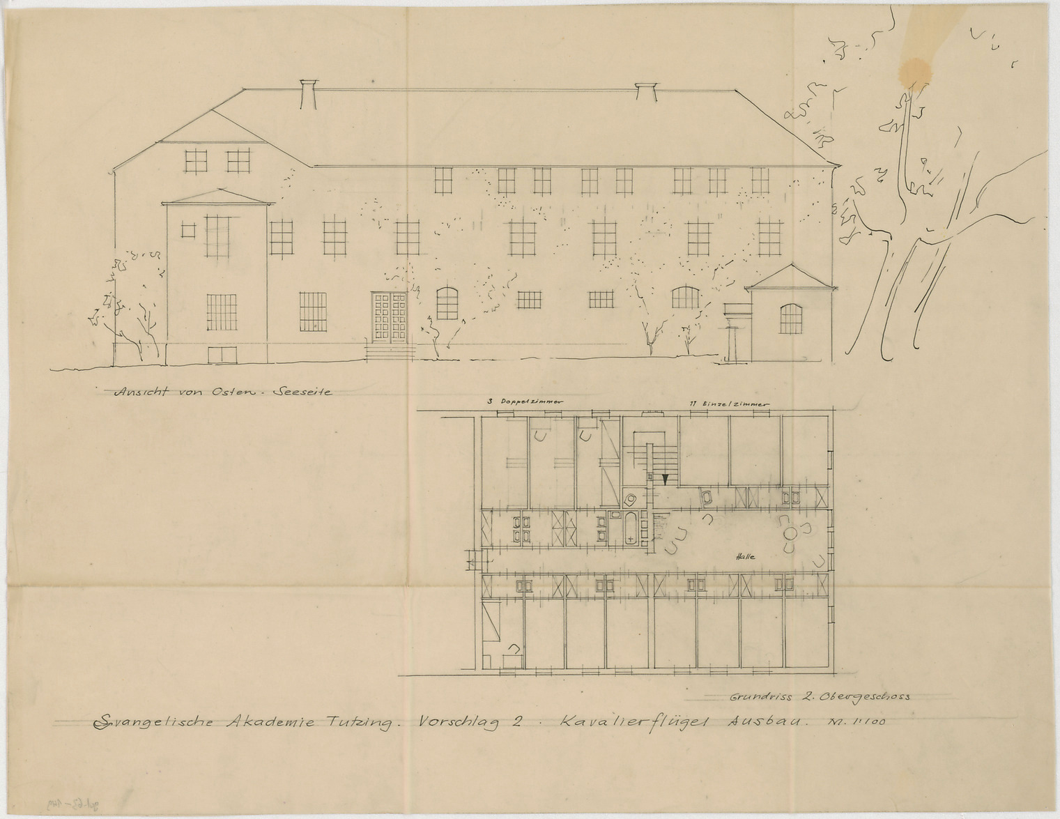 - Ausbau Kavalierflügel, Vorschlag 2 (Ansicht von Osten; Grundriss 2. OG)