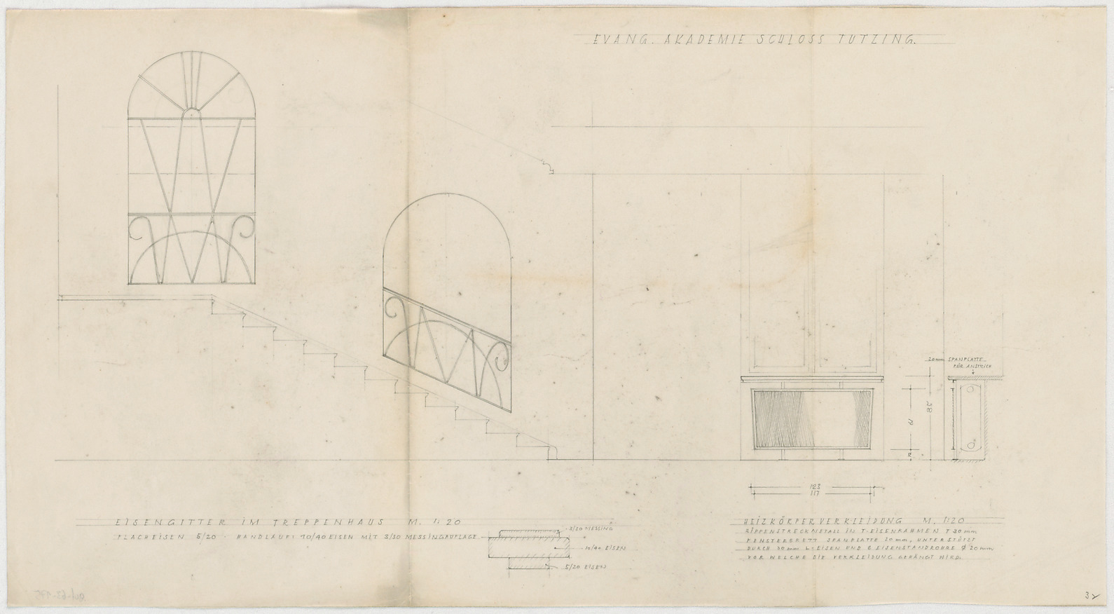 - Eisengitter im Treppenhaus; Heizkörperverkleidung (Ansichten)