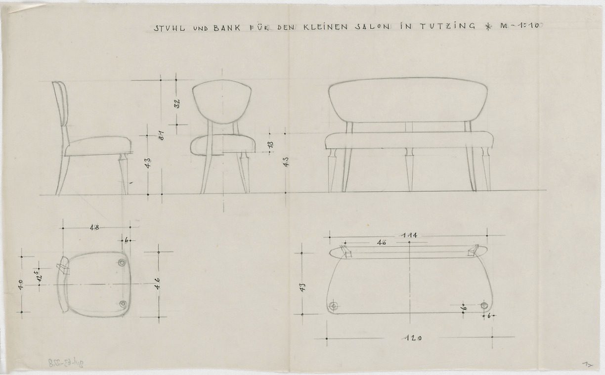 - Kleiner Salon: Stuhl und Bank (Ansichten; Draufsicht)