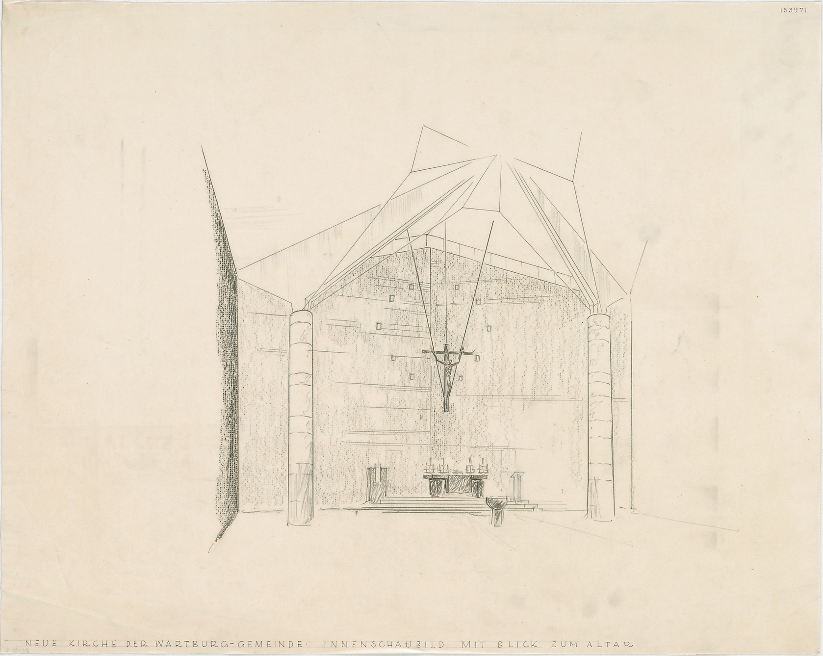 - Innenschaubild mit Blick zum Altar (Perspektive)