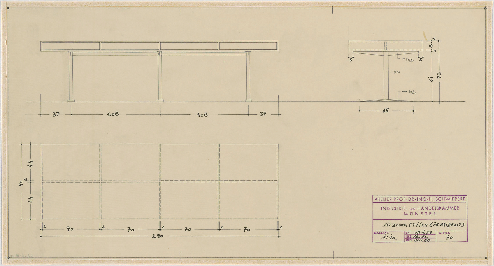 - Sitzungstisch Präsident (Ansicht; Schnitte)