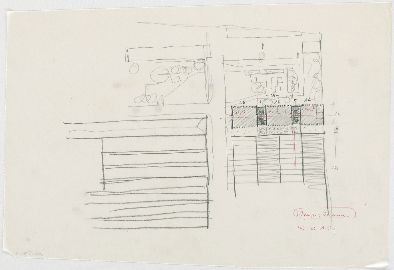 - Graphit / Bleistift, Kugelschreiber, Linienfarbe rot