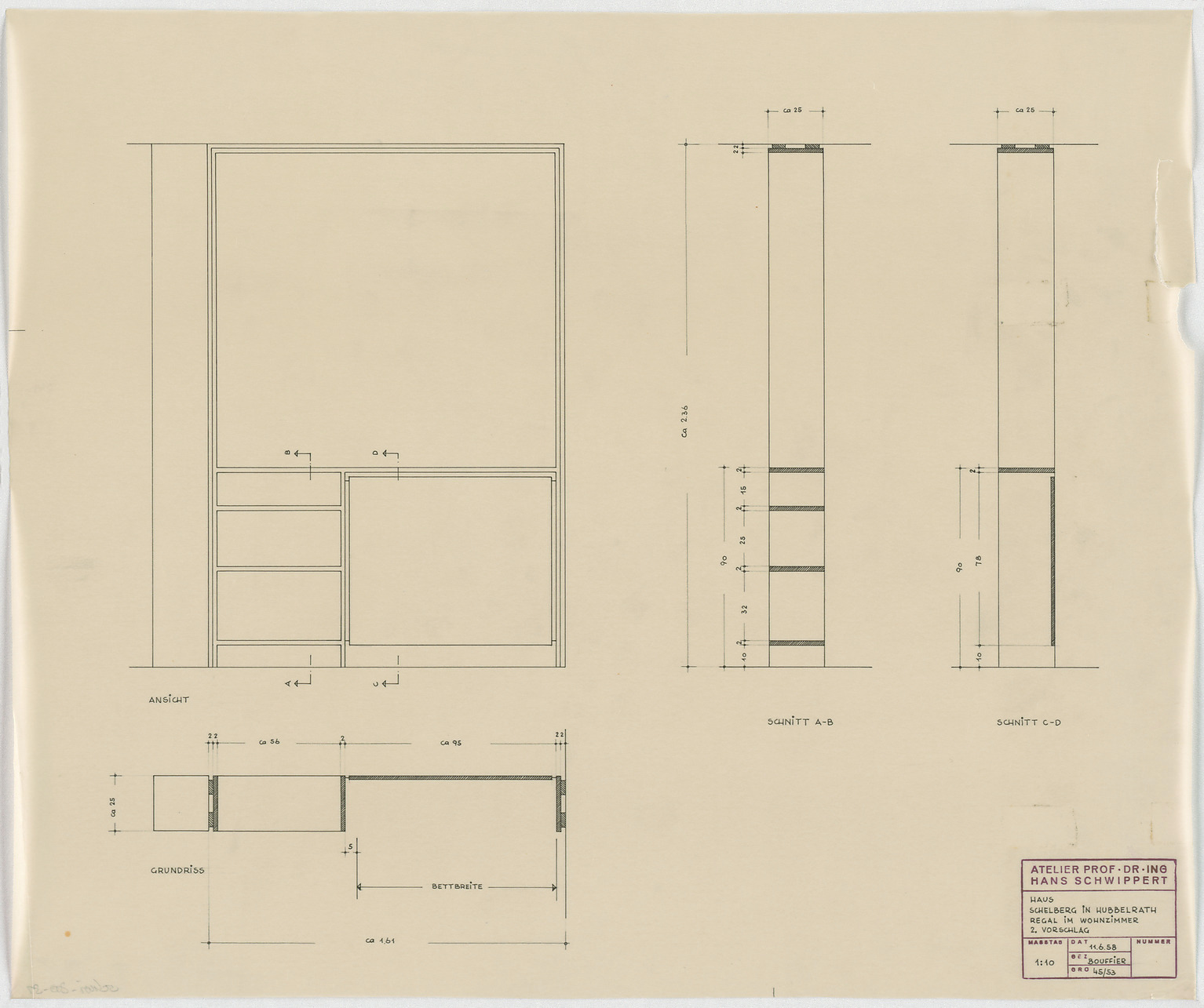 - Vorschlag 2, Wohnzimmerregal (Grundriss; Ansicht; Schnitt)