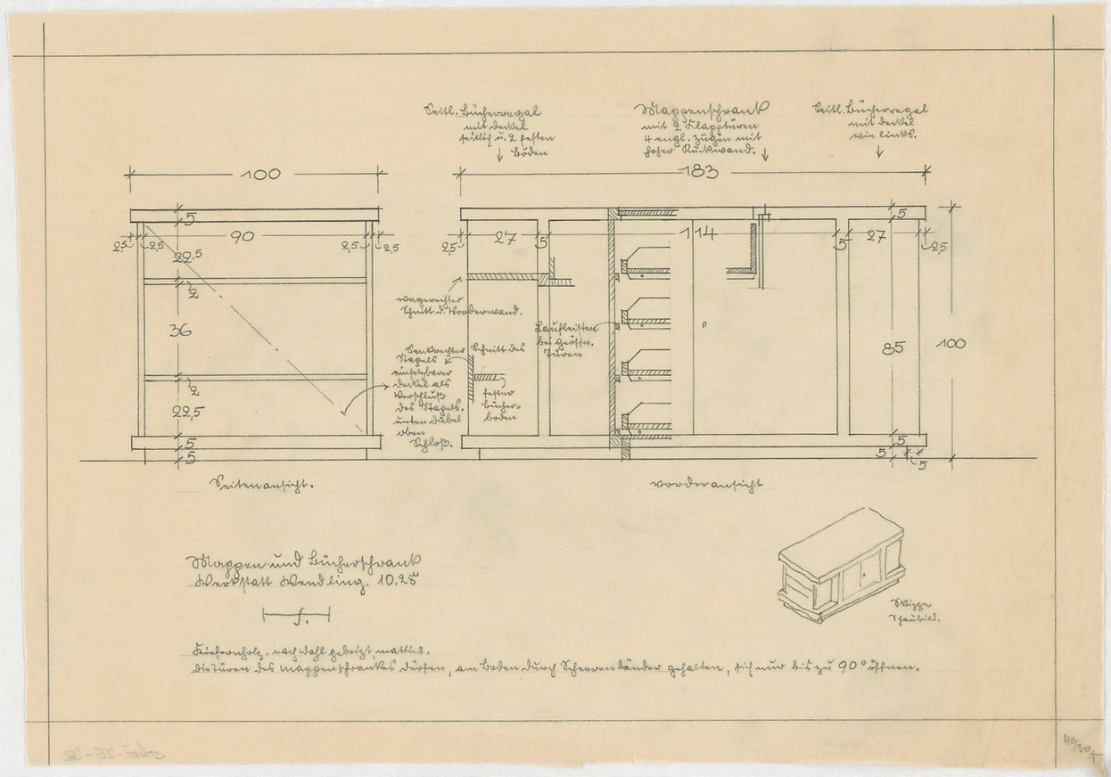 - Wappen- und Bücherschrank (Ansicht; Schnitte)