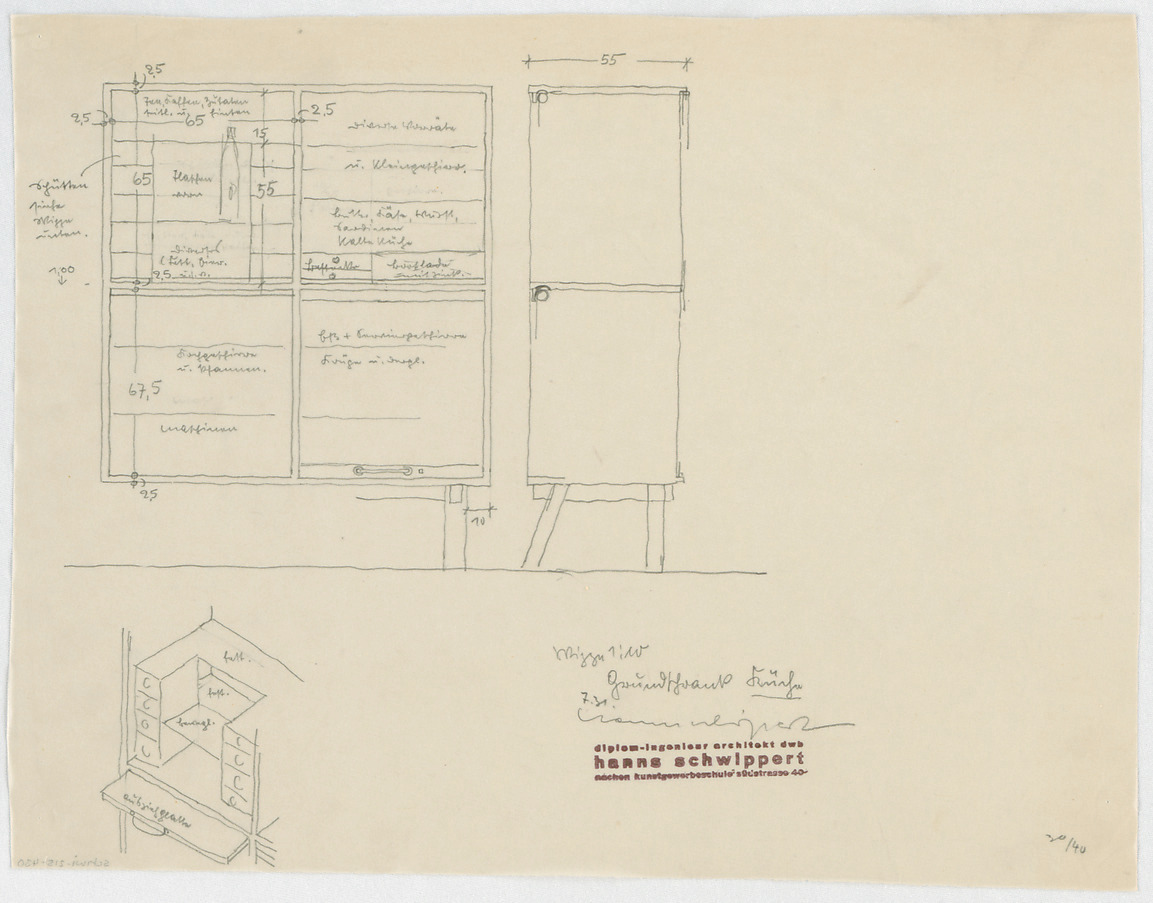 - Küchenschrank (Ansicht; Schnitt; Perspektive)