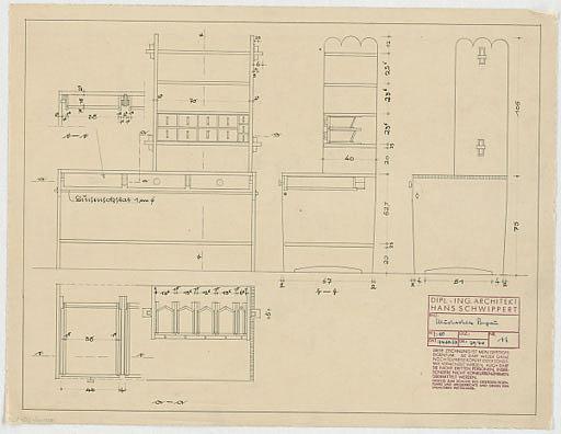 - Musterhaus Begau, Anrichte mit Regalaufsatz (Ansichten; Schnitte)