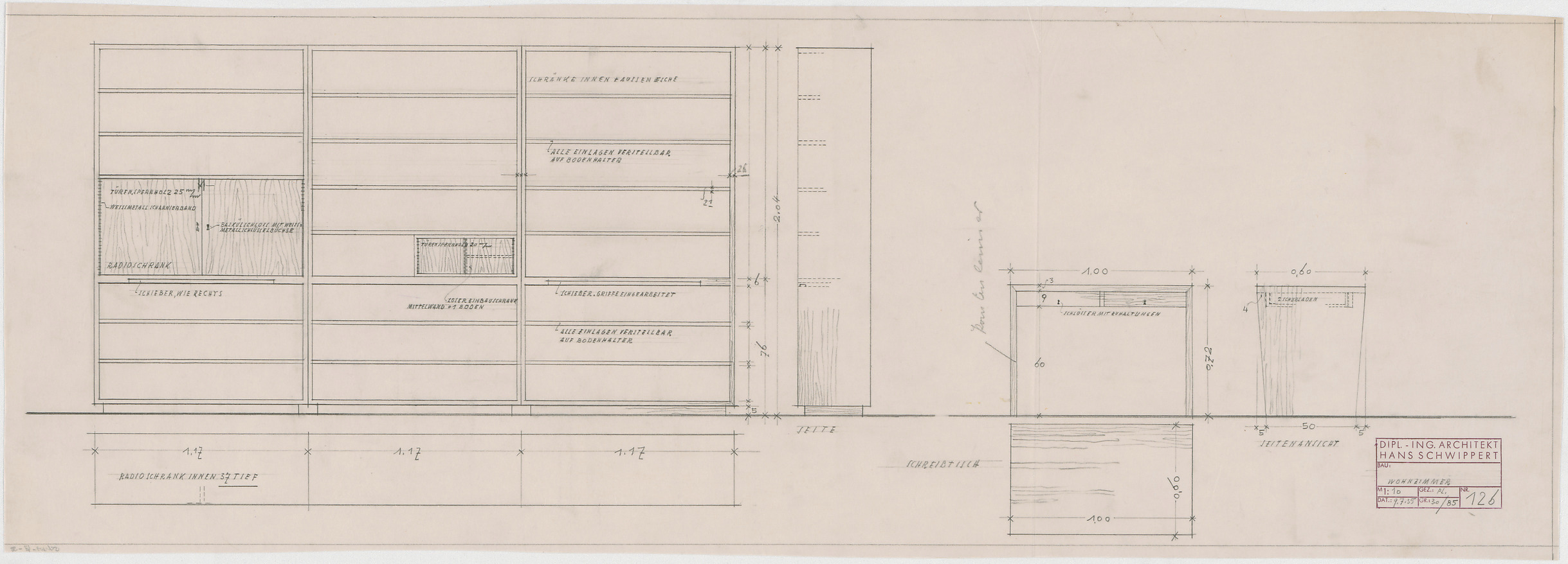 - Wohnzimmerschrank, Schreibtisch (Ansichten)