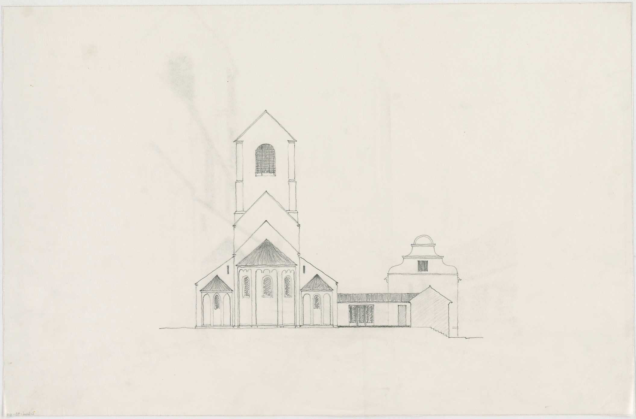 - Pfarrkirche St. Dionysius, Wiederaufbau des Turms; Entwurf für neue Sakristei
