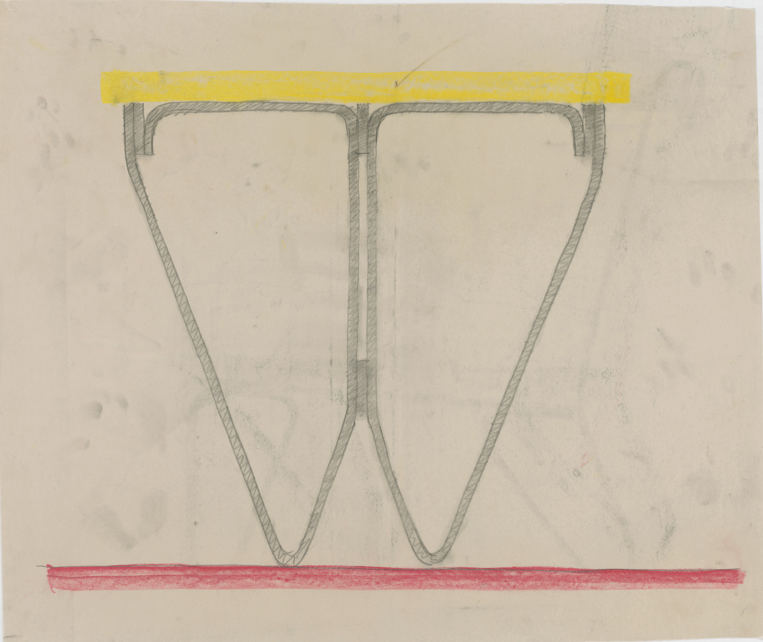 - Graphit / Bleistift, Farbkreide, Linienfarbe rot, gelb