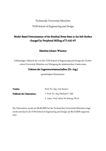 Model-Based Determination of the Residual Stress State in the Sub-Surface changed by Peripheral Milling of Ti-6Al-4V