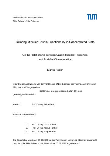 Tailoring Micellar Casein Functionality in Concentrated State - On the Relationship between Casein Micelles’ Properties and Acid Gel Characteristics